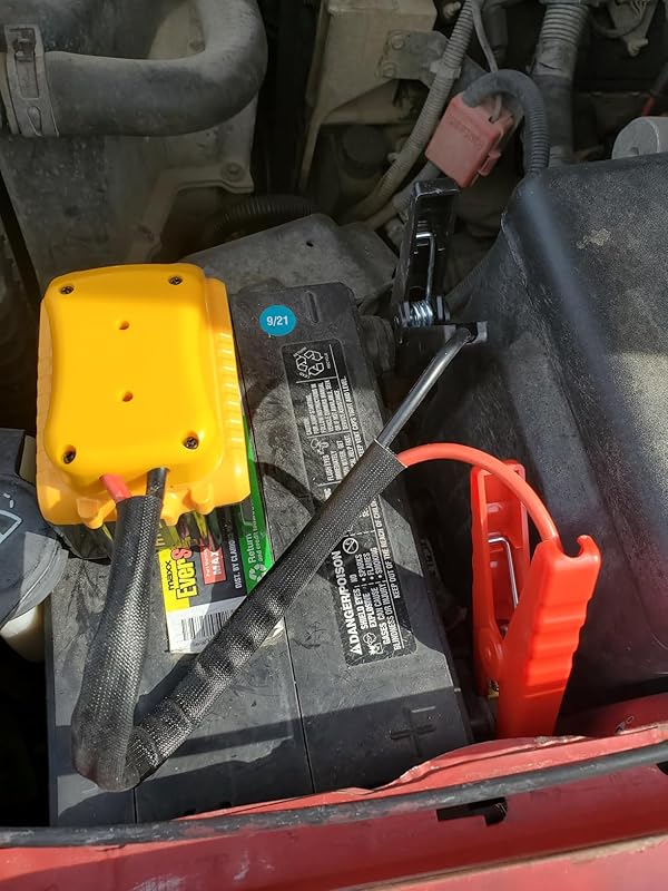 【Specifications】: 8-AWG 2FT wire. Adapter compatible with all DEWALT 20V batteries. Perfect for most motorcycles, cars, and SUVs, capable of jumpstarting up to 5.0L gasoline and 3.0L diesel engines. |