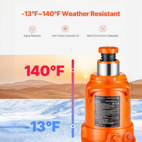 Say goodbye to lifting struggles! This 20-ton hydraulic bottle jack has a lifting range of 6.69–12.6 inches, easily handling heavy vehicles. The leak-proof hydraulic cylinder ensures durability. Compact and portable, it’s perfect for quick tire changes and repairs.