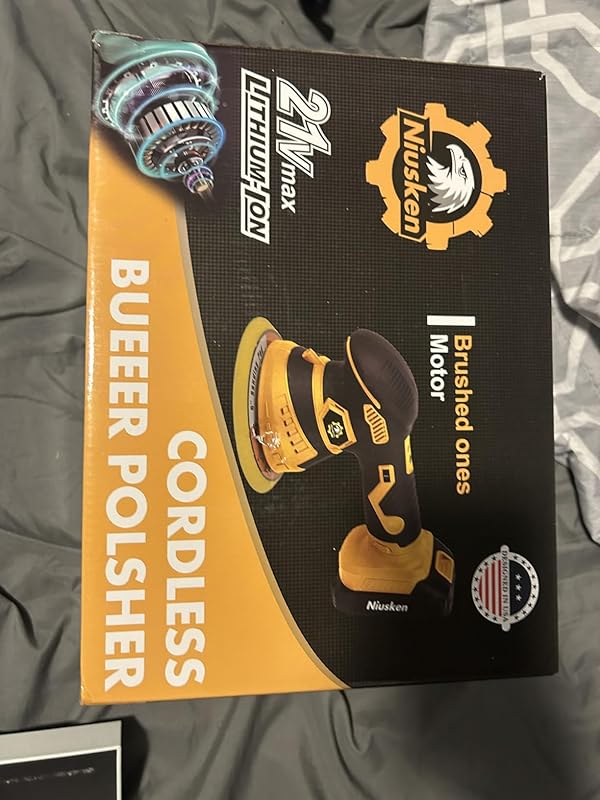 The Niusken Cordless Buffer Polisher is a fantastic tool for detailing and polishing. The 21V lithium battery gives it plenty of power and long runtime, which makes it easy to work without being tied to a cord. The motor runs smoothly and has enough torque to handle waxing, buffing, or polishing cars and other surfaces.It’s lightweight and well-balanced, so it’s comfortable to hold for extended periods. The speed settings are easy to adjust, allowing for precise control depending on the job. Battery charging is quick, and the overall build quality feels solid and durable.