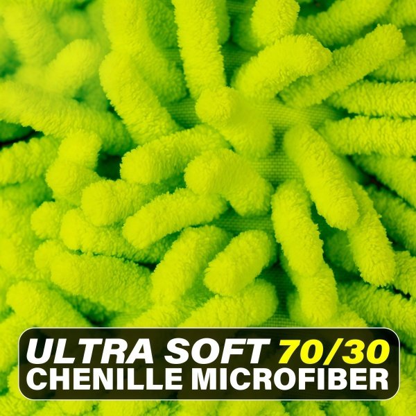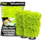 Chenille Premium Scratch-Free Microfiber Car Wash Gloves – 2-Pack, Bright Green, Ultra-Soft Car Wash Gloves, No Swirl Marks, Suitable for Trucks, SUVs, Motorcycles, etc.