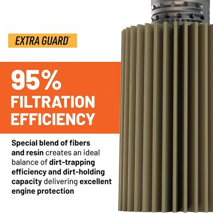 - CAPTURES 95% OF DIRT PARTICLES: Built to balance 95% dirt-trapping efficiency with dirt-holding capacity, capturing nearly all of the dirt particles that can cause harmful engine wear