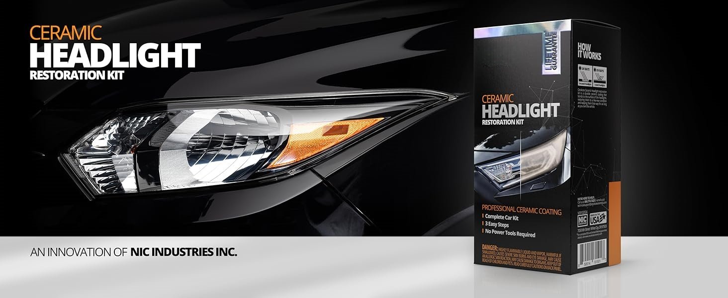 Ceramic Headlight Restoration Kit – Guaranteed to last as long as your car – Restores headlights to like-new condition – No power tools required – 10-piece pack