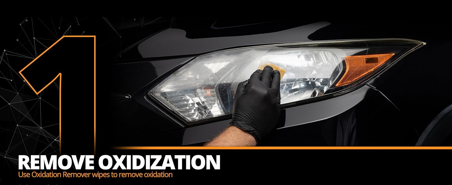 - KIT CONTENTS – Each headlight restoration kit includes (8) Step 1 Oxidation Removing Wipes, (1) Step 2 Sanding Kit, and (2) Step 3 Ceramic Coating Wipes.