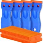 This kit, which includes 4 plastic scrapers and 100 blades, is designed to remove labels and stickers without scratching surfaces and can also remove adhesives such as stickers, gaskets, and paint from car windows.