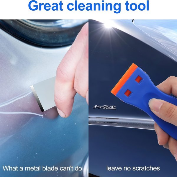 The plastic scraper tools is lightweight, not easy to break and sharp enough to easily remove stubborn residue without scratching car paint, window color, or other surfaces.