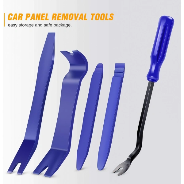 There are 5pcs different kinds of trim tools, including 4 pcs car door panel removal tool and 1 fastener remover to facilitate your needs.