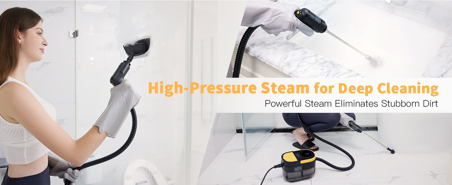 - Design: Steamer for Cleaning is equipped with a handle-mounted, three-level adjustable steam control function, ensuring precise output. Steam cleaner for home comes with a 1600ml water tank for extended use, reducing frequent refills. With a total stretching distance of 158 inches, this pressurized handheld steam cleaner can easily reach high or distant areas, making it suitable for tasks like bathroom steam cleaner for shower and steam cleaner walls floor and furniture