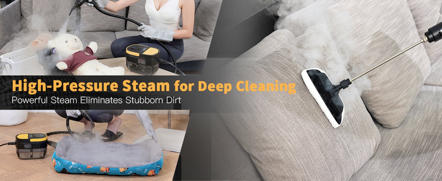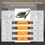 - Steam cleaner for home delivers 1500W pressurized steam at 3BAR and 212°F, heating in 15 seconds for deep cleaning on tile, grout, glass, and upholstery.