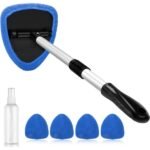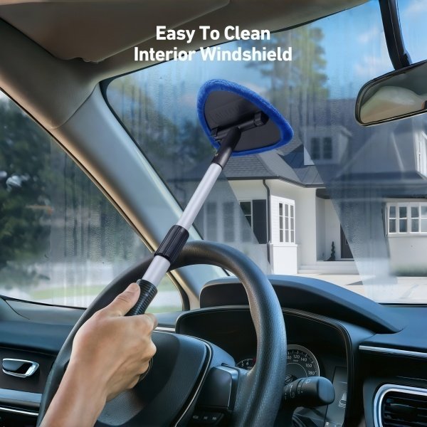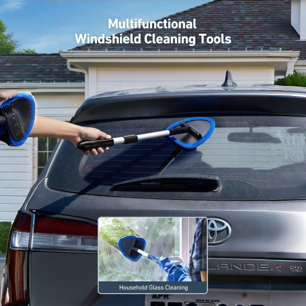 - Windshield cleaning tools kit uses a retractable handle and 180° rotating head to clean hard-to-reach interior glass with 4 durable microfiber pads.